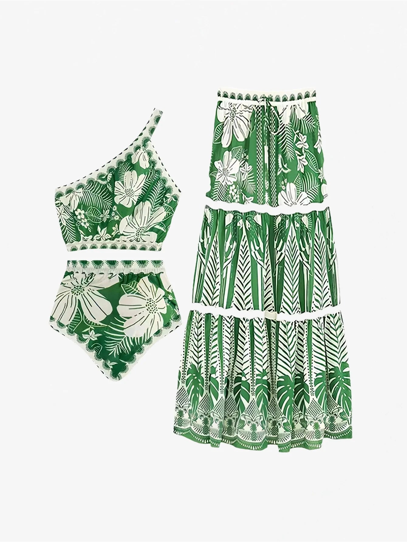 Sofistike Tropikal Baskılı Mayo İki Parça Seti