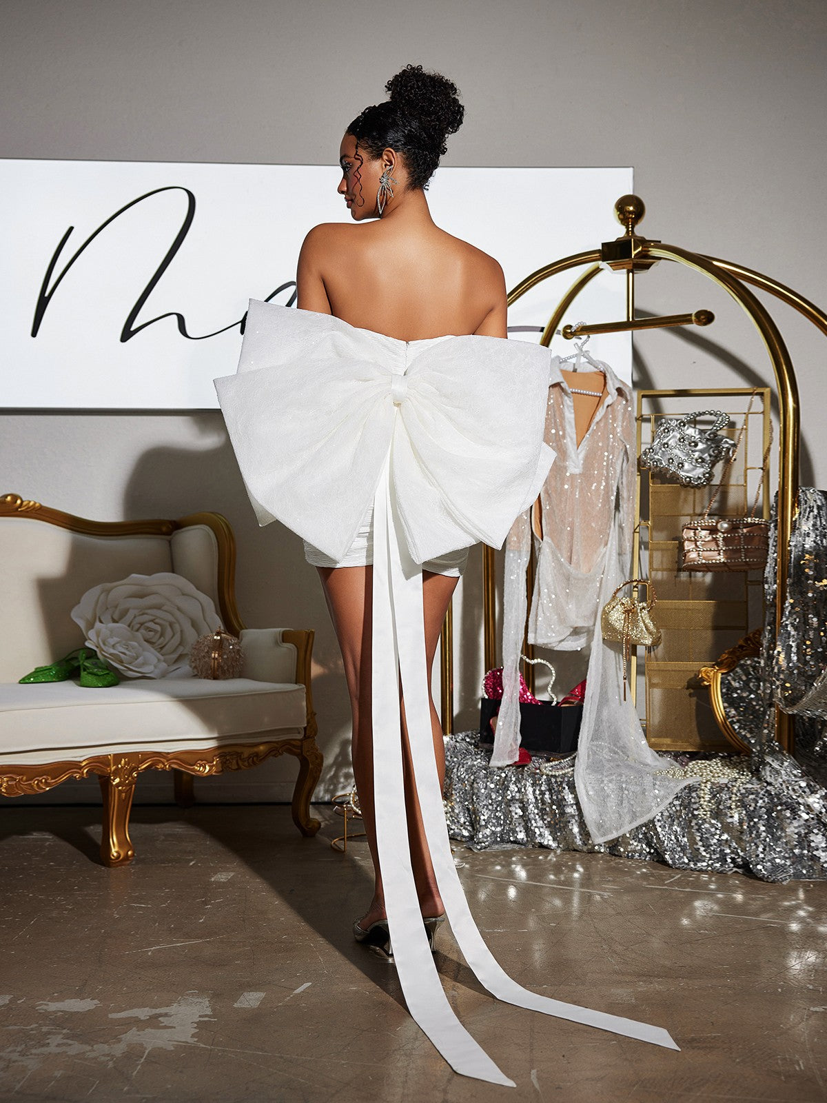 Sophrona Askısız Çiçek Fiyonklu Mini Elbise