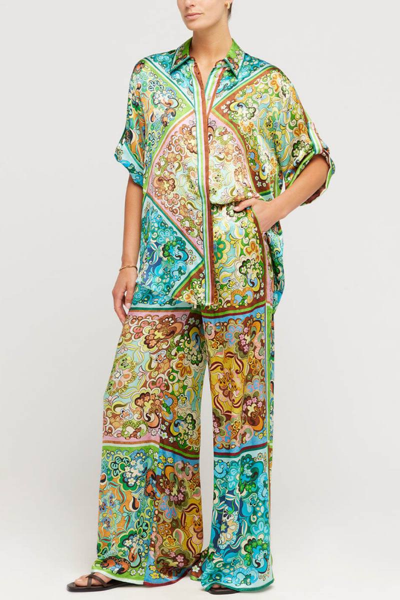 Özel Saten Baskılı Düğmeli İkili Takım