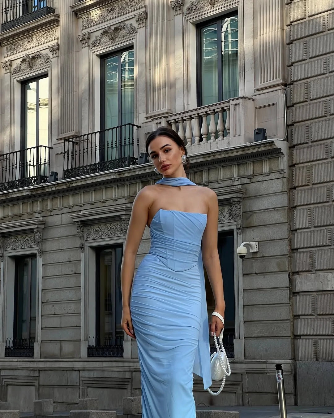 Elbiselerimiz, çağdaş tasarım unsurlarıyla klasik güzellik kavramını yeniden tanımlıyor. Zarif, vücuda oturan siluet, zarif bir görünüm yaratarak sizi gecenin parlayan yıldızı yapar. İster bir galaya, ister bir düğüne veya resmi bir akşam yemeğine katılın, bu elbise zahmetsizce göz alıcı bir görünüm için tercihiniz olacak.