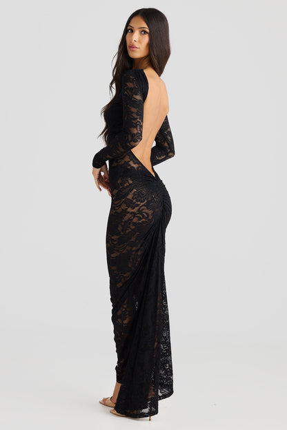 26% İndirimJazlyn Siyah Çiçekli Dantel Midi Elbise