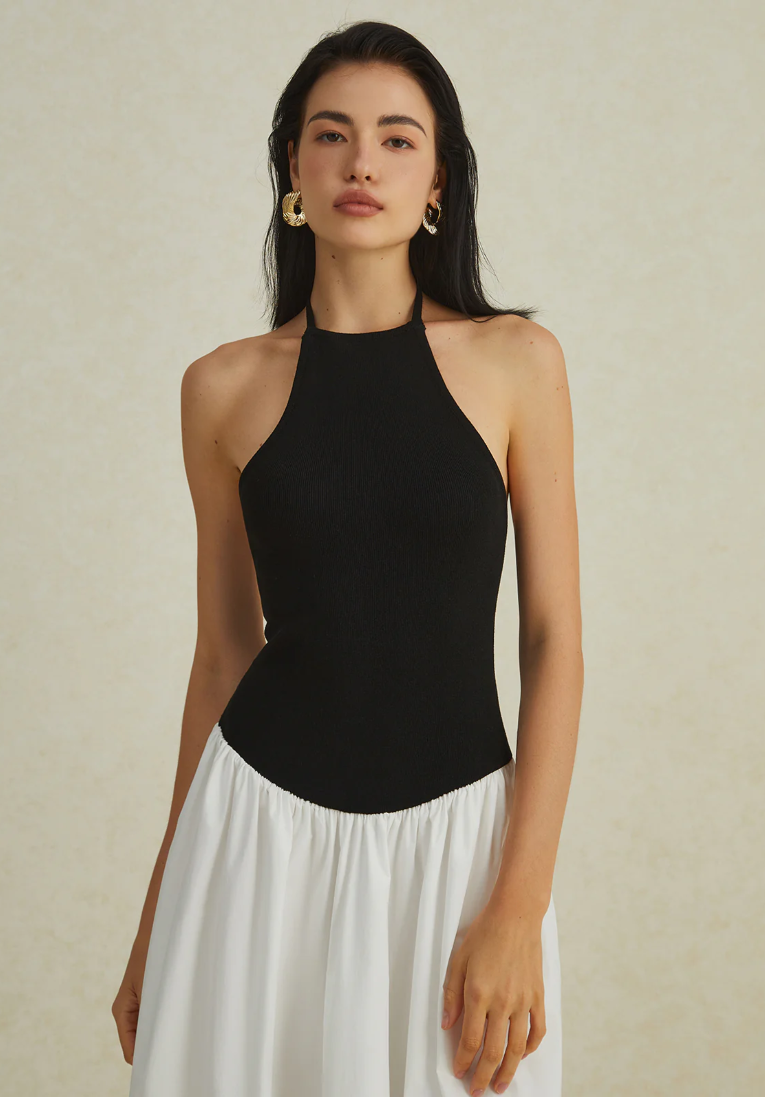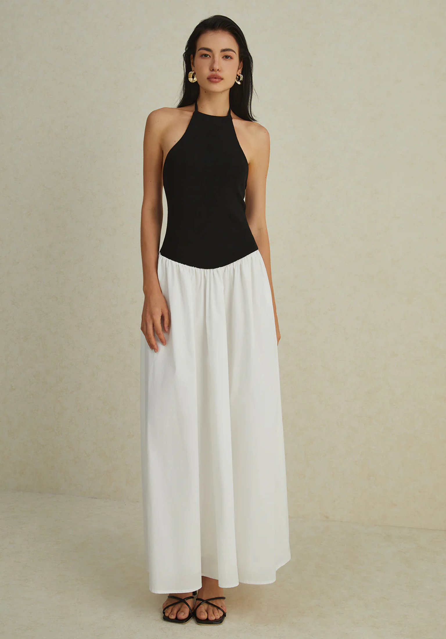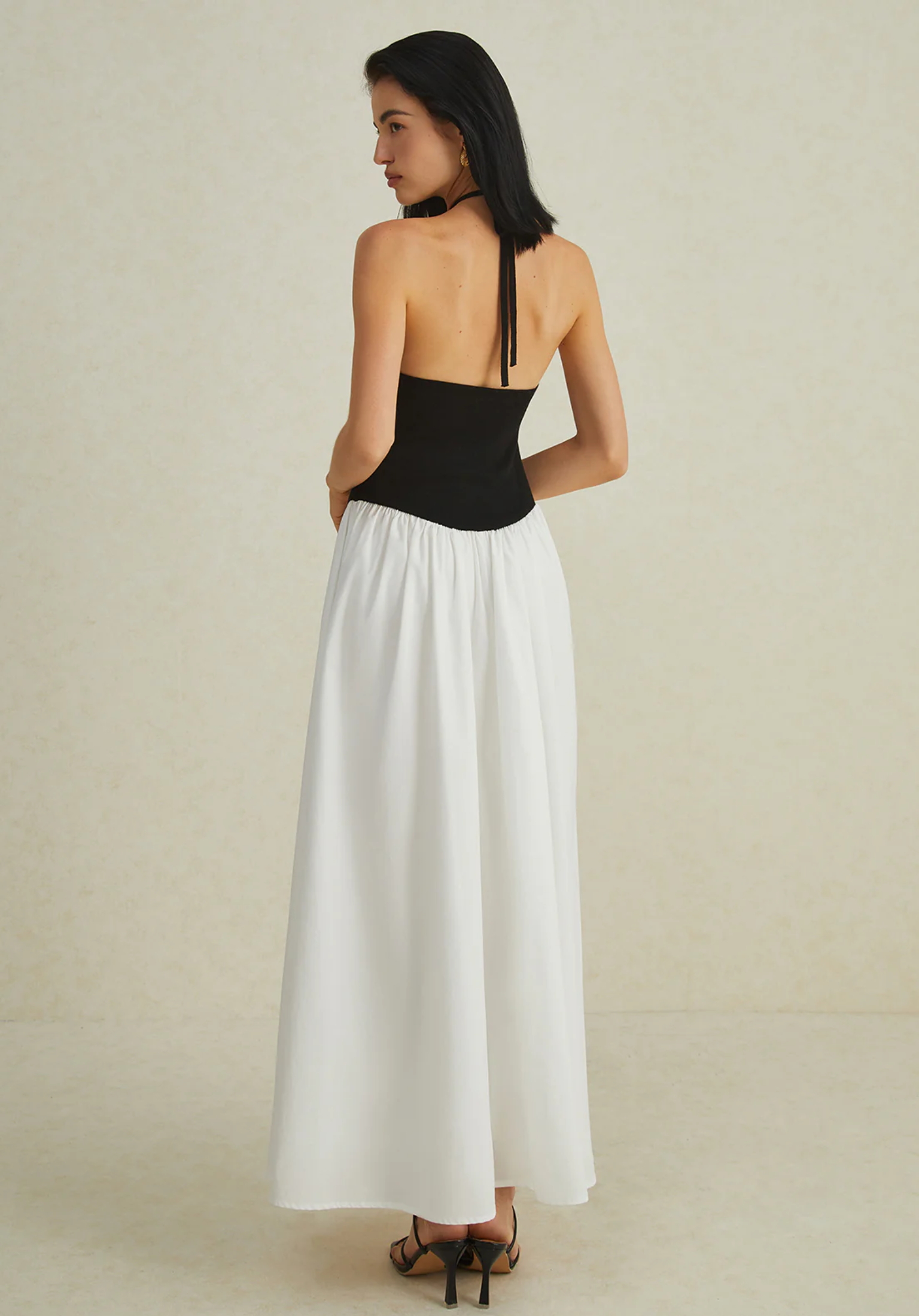 İki Renkli Boyundan Bağlamalı Maxi Elbise