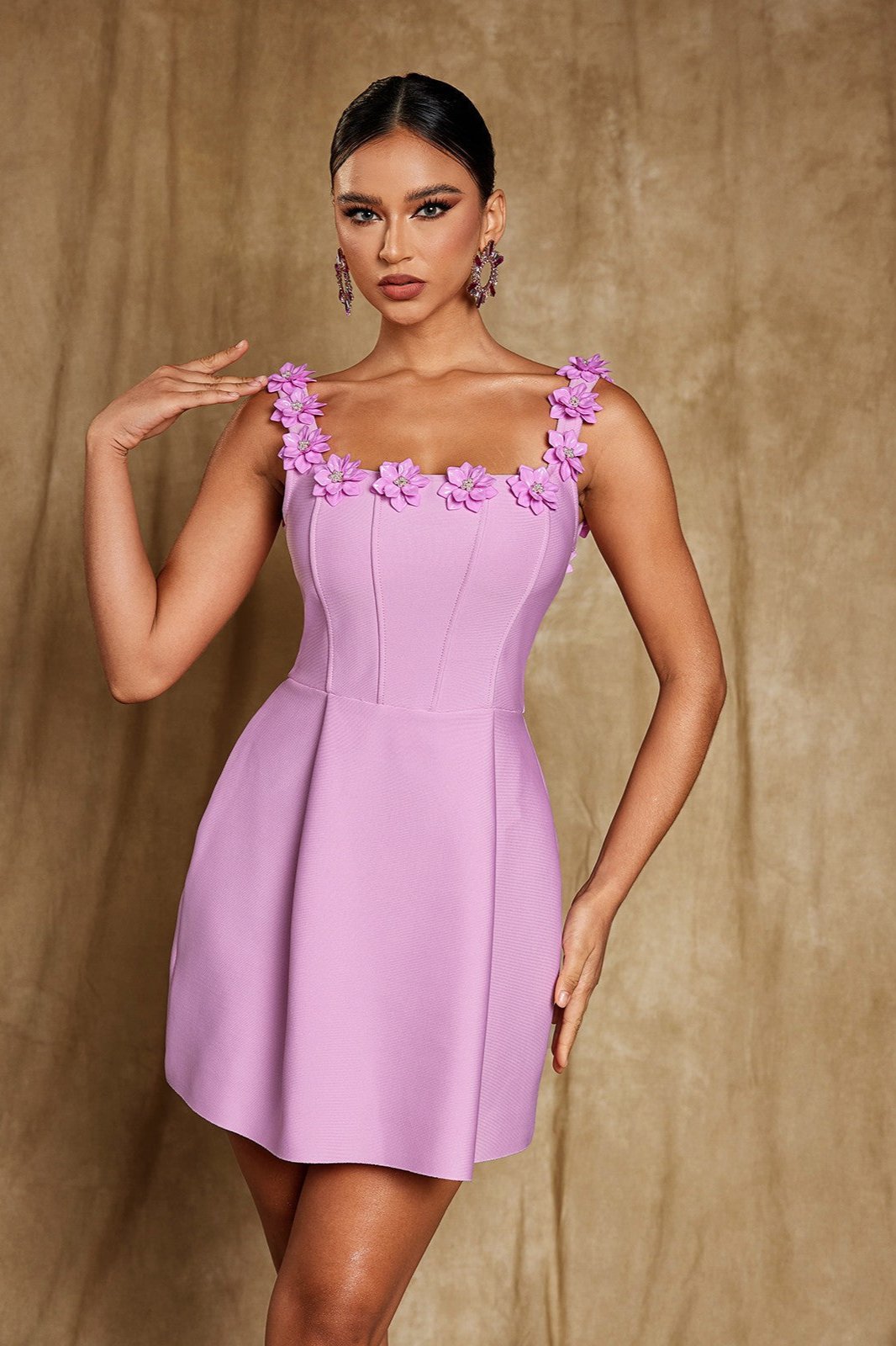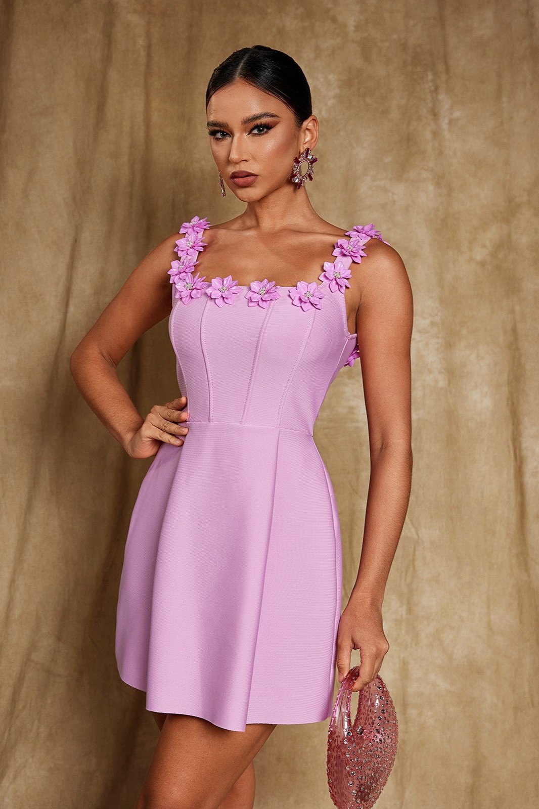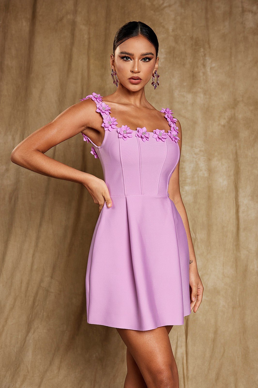 Uriah Kare Yaka Çiçek Bandaj Mini Elbise