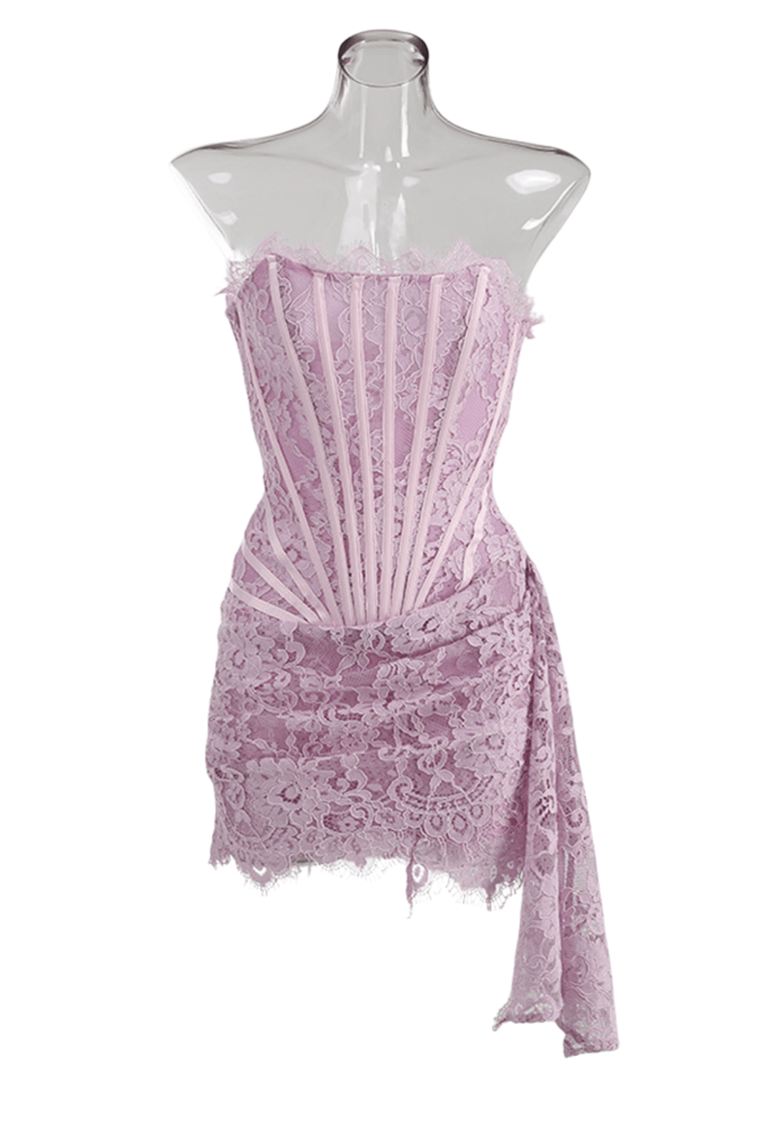 Yolita Askısız Patchwork Dantel Mini Leylak Elbise
